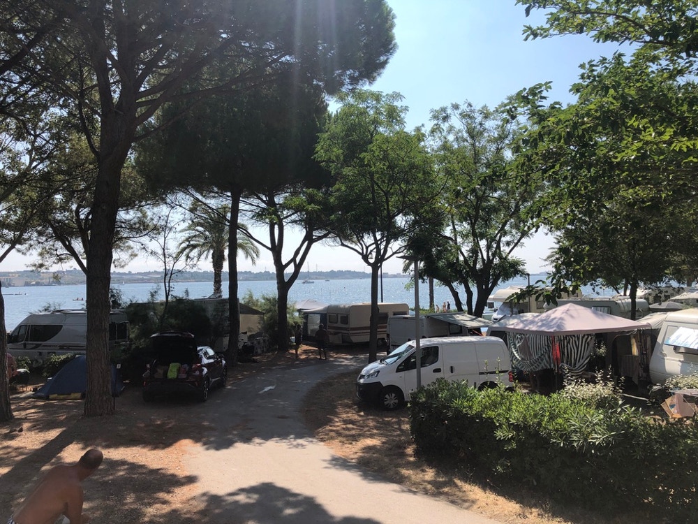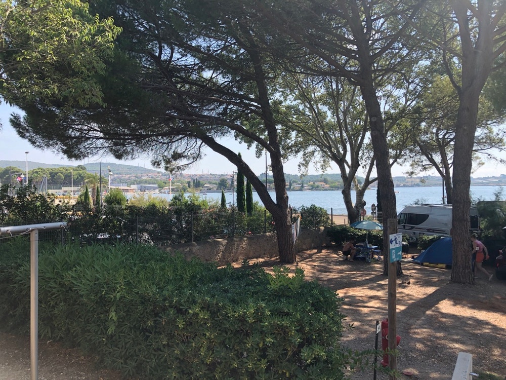 Der Platz liegt gegenüber der Promenade von Balaruc-les-Bains an der Lagune Etang de Thau.