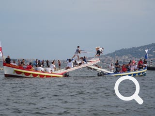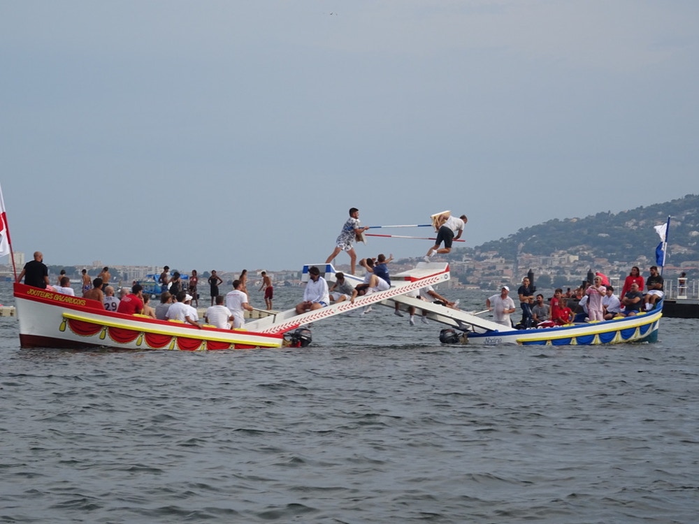 In der Lagune findet direkt gegenüber vom Campingplatz Jährlich ein Fischerstechen statt.