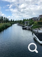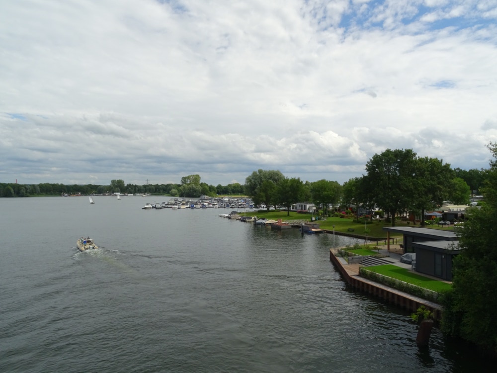 Auf der einen Seite Campingplatz, auf der anderen Yachthafen und